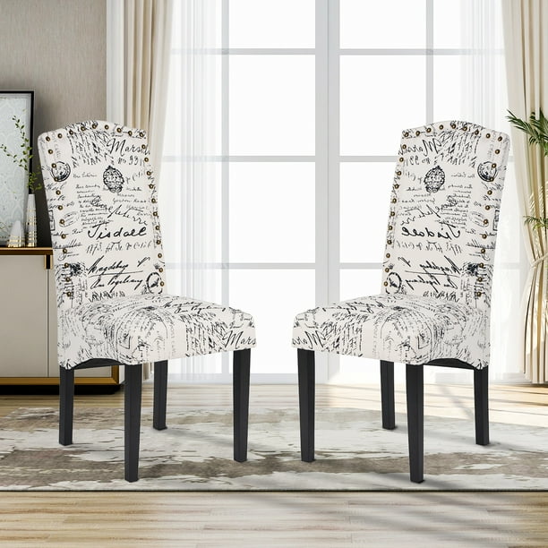 Zeeyh Dining Script Fabric Accent Chair Set Of 2 Upholstered Armless Chair Single Sofa Letter Print And Brass Nail Head Trim Solid Wood Legs Living Room Bedroom Office Chair Walmart Com